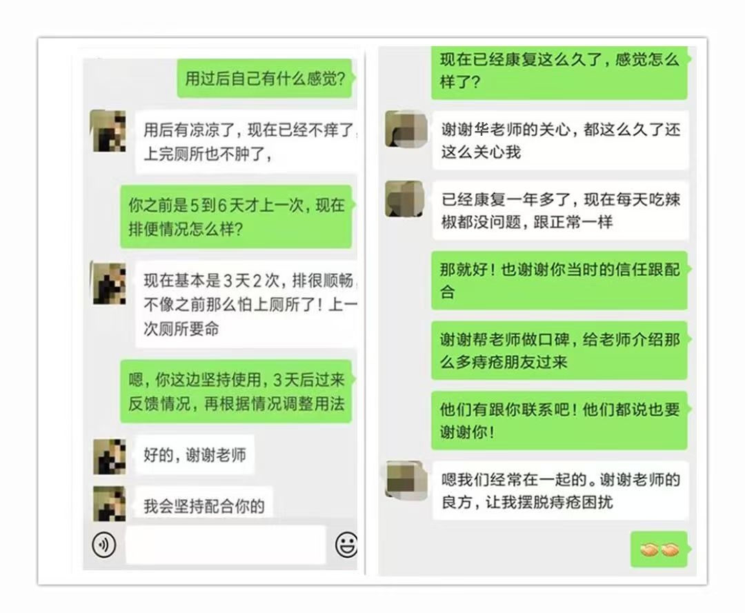 后来去医院时候相识的几个“痔”友听说我的痔疮好了,问我方法,我把微信号:kda5889(点击微信号添加)推荐给他们,没想到他们也同样脱离了痔疮的苦海!一个外痔的用了20天的时候说外痔没了,另外两个一个内痔脱出还一个跟我一样混合痔的也都好了!